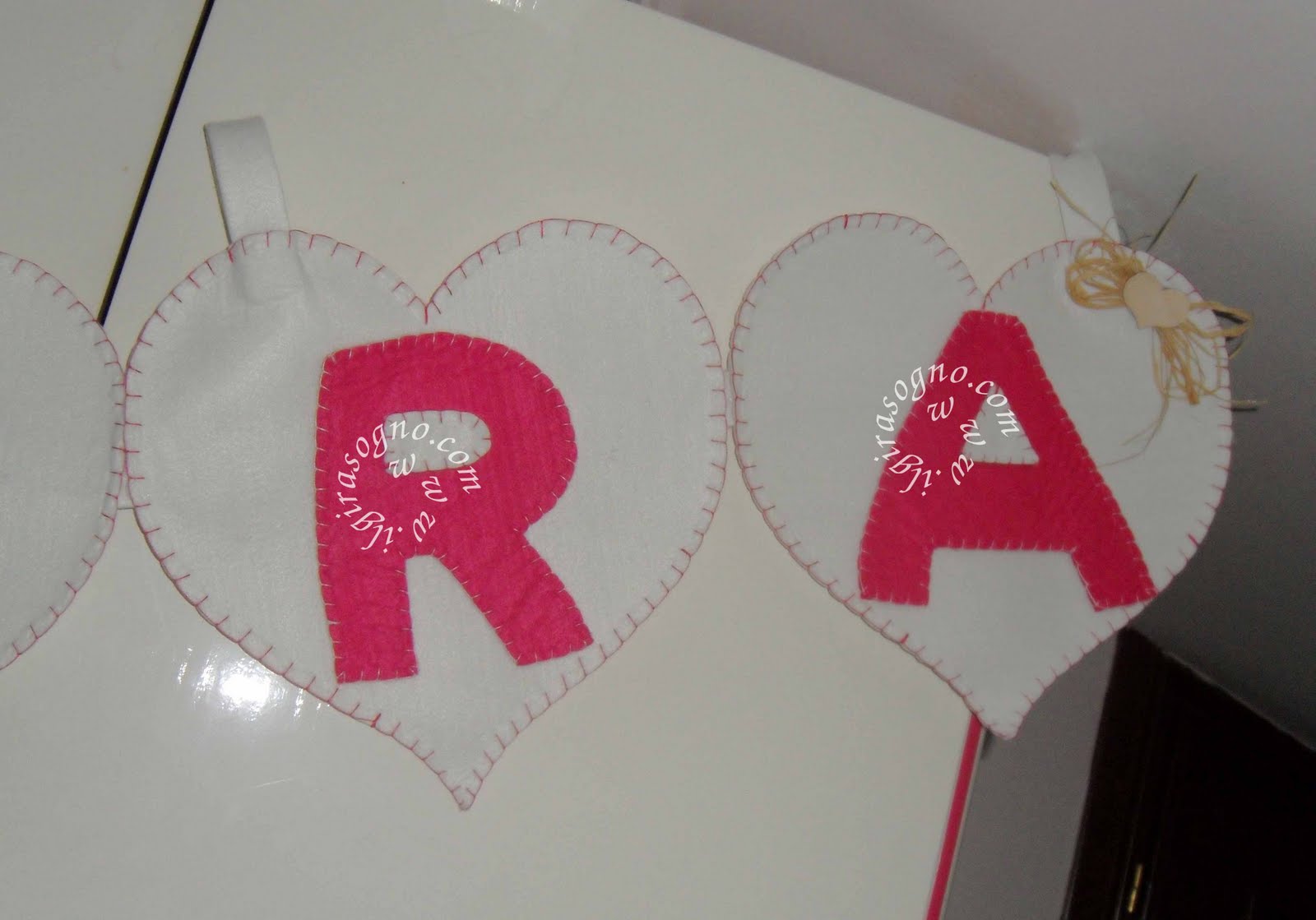 Il fiocco striscione è composto da cuoricioni maxi in feltro rigido su cui ho applicato dei passantoni per poterlo appendere comodamente ovunque, ringhiere grate o anche in casa basta un bastone per le tende!