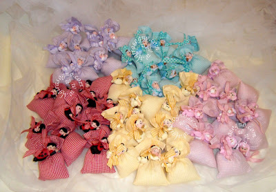 i sacchettini sono tutti cuciti a mano con fiocchetto abbinato alla bimba della natura!