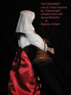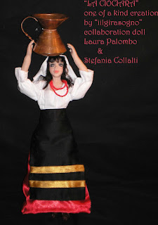 Posable doll "la ciociara" modellata a mano senza l'uso di stampi è un pezzo unico e irriproducibile by "ilgirasogno" indossa il tipico vestito ciociaro "FERENTINESE" cucito a mano e riprodotto con cura nei minimi particolari.I capelli sono in mohair tibetano, è dipinta a mano con colori alchidici di alta qualità le tipiche ciocie sono modellate in fimo, la conca in scala è in vero rame.