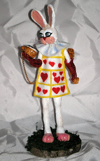 Direttamente dal PAESE DELLE MERAVIGLIE è arrivato il binaconiglio, rivisitazione della classica figura di mr.rabbit modellato in prosculpt su armatura in filo di acciaio fissata con resina epossidica per renderlo resistente, è dipinto a mano con colori alchidici di alta qualità fissati con spray opaco, il vestito è stato interamente cucito a mano in panno e sono stati applicati tutti gli inserti, inoltre gli accessori sono removibili così come lo stesso coniglio può essere rimosso dalla base per non subire danni nella spedizione, è come tutti i pezzi di "magical fairy's ilgirasogno" un OOAK un pezzo unico e irriproducibile.