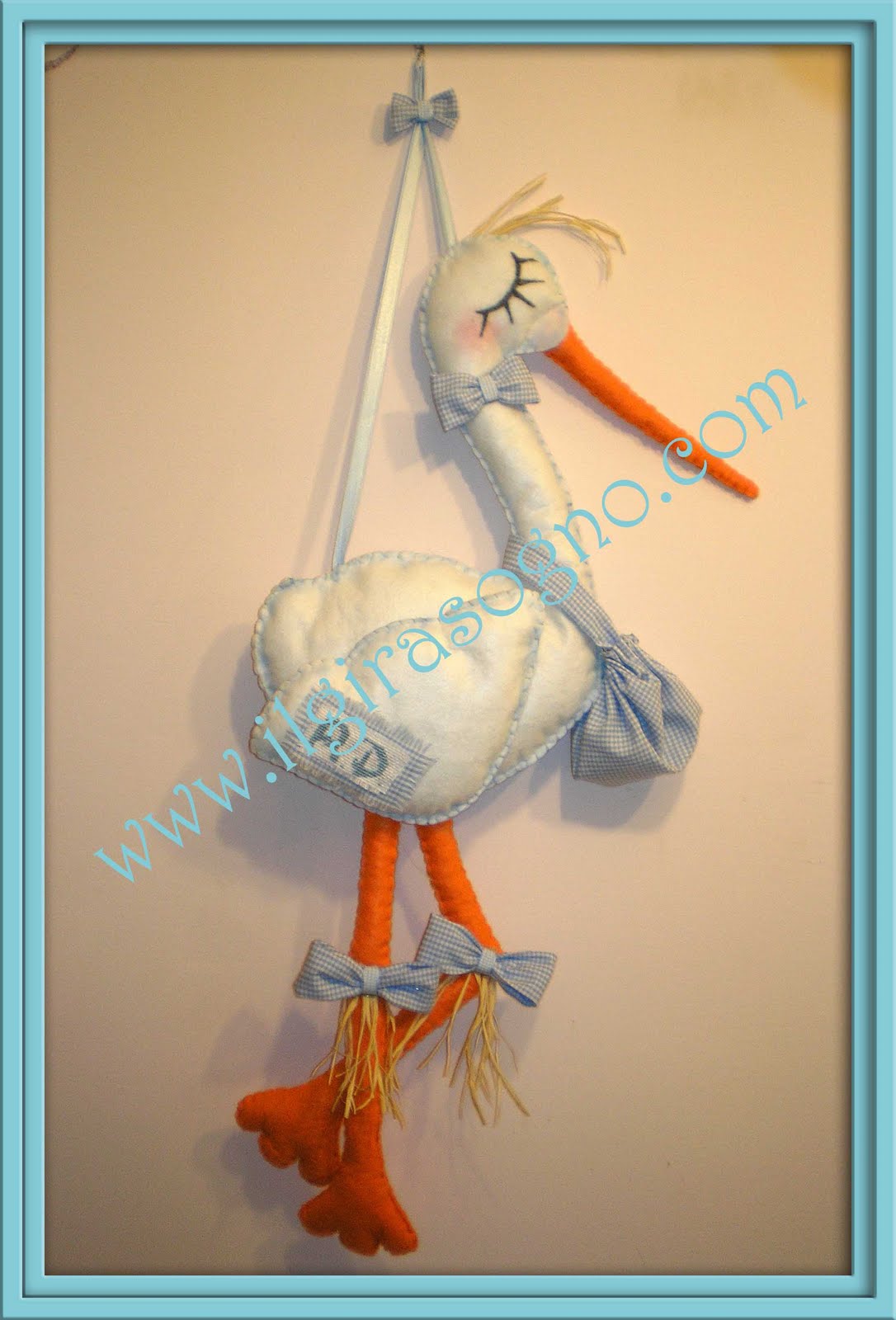 E' tempo di nascite....per festeggiare l'arrivo del piccolo Riccardo ho cucito questa cicogna in panno, il cartamodello originale è preso da una rivista di cucito creativo, l'ho modificato per adattarlo al disegno della mia cicogna