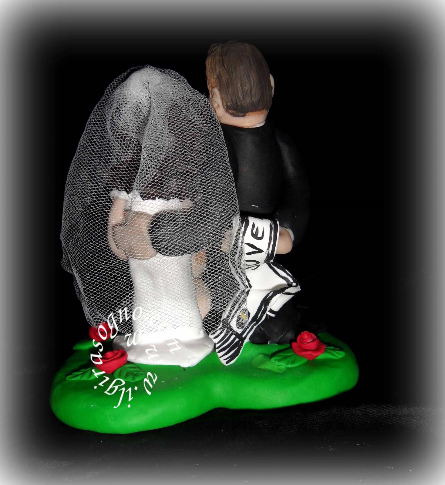 ed il cake topper che rappresenta loro due con la piccola Mia la loro cagnolina