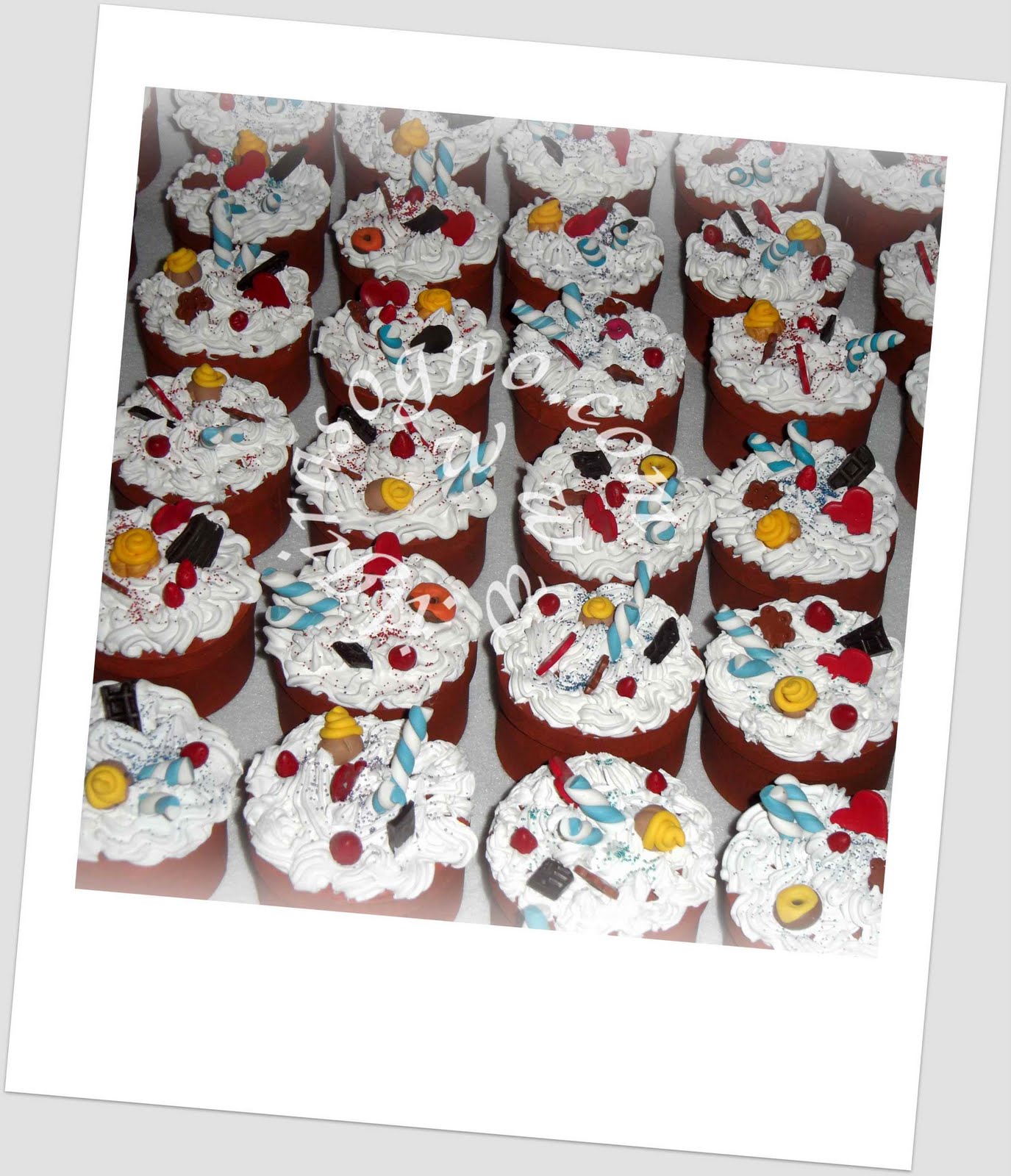 sono una distesa di panna montata e miniauture di dolcetti!!!Le scatoline sono in balsa e dentro possono essere rimepite di confetti!
